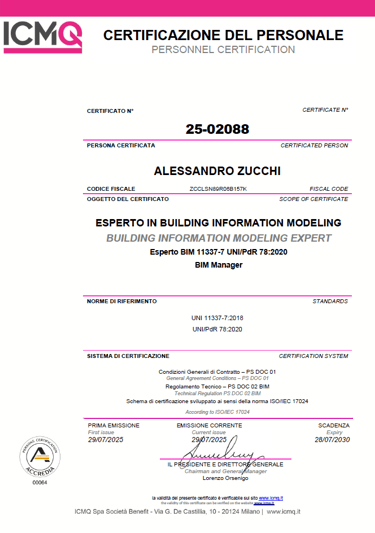 BIM Manager in riferimento alle norme UNI 11337-7 e UNI/PdR 78:2020 (Cert. n. ICMQ 25-02088)