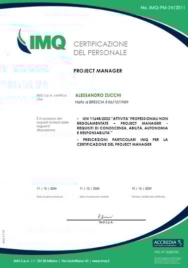 Project Manager in riferimento alla norma UNI 11648:2022 (Cert. n. IMQ-PM-2412011)